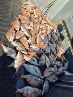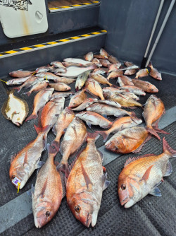 ========== 10월 19일 참돔 씨알급 82수 조황 ==========전날 주의보로 하루 쉬고 말도권 출항~씨알급 참돔 82수 조황입니다.오후 예보가 좋지 않았고 갑자기 험해진 바다에 후다닥 ~~ 잡고~2시정도 급히 철수했습니다.탑승하신 모든 조사님 고생하셨습니다. 감사합니다~+++ 금주 계속 참돔 출항~ 자리여유 많습니다 ++++++ 28일부터 왕갑오징어 출항~ 자리 여유 많습니다. +++ ** 10월 참돔 / 갑오징어 교차 출조합니다. -조금물때 : 갑오징어 , 사리물때 : 참돔 타이라바**오랜기간 축적된 경험과 데이타 ~ 스텔스호에서 즐겨보세요**○ 낚시마을 직통전화 010 - 9224 - 3878 ○ 스텔스호 직통전화 010 - 5629-3878========== 스텔스호 예약안내 ===========조용하고 빠른 포인트 진입! 군산 스텔스호 입니다.■ 선장님(유주봉) 휴대전화 : 010-5629-3878■ 실시간 홈페이지 예약 : http://stealth.sunsang24.com■ 오시는길 : 전라북도 군산시 새만금북로 297 (군산낚시마을)■ 군산낚시마을 : 063) 461-3873, 010-9224-3878■ 계좌안내 : 신한은행 / 802-12-076957 / 유성은******************* 선상낚시 출조안내 *************************●참돔루어 : 선비 11만원 (중식제공)●참돔피딩출조 : 선비 8만원 (4시 출항~ 13시입항), 중식X(간식제공)●광어다운샷 : 선비 11만원 (중식제공)●농어,광어,민어생미끼 : 선비 13만원 (생미끼 + 중식제공)●갑오징어 : 선비 10만원 (중식제공)●문어 : 선비 11만원 (중식제공)●주꾸미: 선비 10만원(휴일) , 9만(평일)- 중식제공풍성한 조과와 추억을 낚을수 있도록 항상 친철하고 최선을 다하겠습니다.감사합니다.