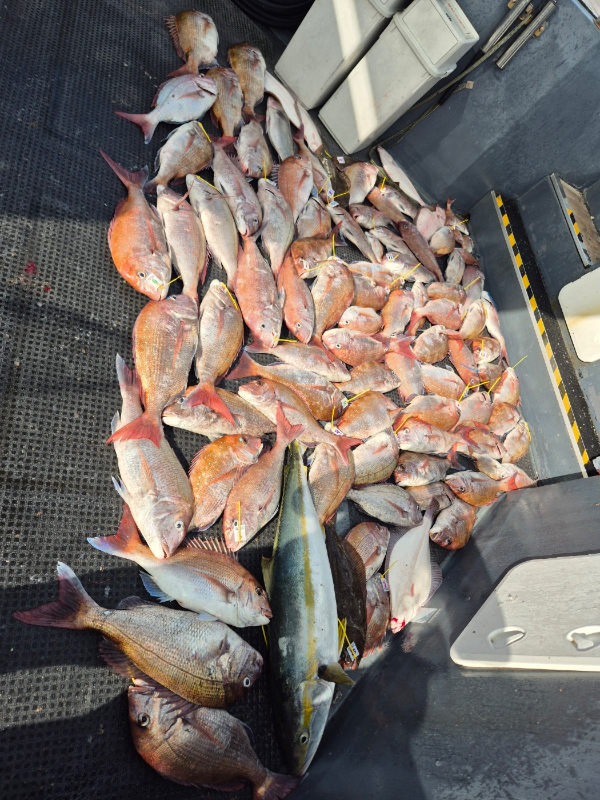 ========== 10월 19일 참돔 씨알급 82수 조황 ==========전날 주의보로 하루 쉬고 말도권 출항~씨알급 참돔 82수 조황입니다.오후 예보가 좋지 않았고 갑자기 험해진 바다에 후다닥 ~~ 잡고~2시정도 급히 철수했습니다.탑승하신 모든 조사님 고생하셨습니다. 감사합니다~+++ 금주 계속 참돔 출항~ 자리여유 많습니다 ++++++ 28일부터 왕갑오징어 출항~ 자리 여유 많습니다. +++ ** 10월 참돔 / 갑오징어 교차 출조합니다. -조금물때 : 갑오징어 , 사리물때 : 참돔 타이라바**오랜기간 축적된 경험과 데이타 ~ 스텔스호에서 즐겨보세요**○ 낚시마을 직통전화 010 - 9224 - 3878 ○ 스텔스호 직통전화 010 - 5629-3878===== 군산 낚시마을 예약안내 =====■낚시마을 : 010-9224-3878, 063)461-3873■오시는 길 : 군산시 새만금 북로 297 (비응항가는 대로변 첫집)■홈페이지 : http://town.sunsang24.com/■계좌안내 : 신한 / 802-12-076957 / 유성은-찾아주셔서 감사합니다. 항상 최선을 다하겠습니다.